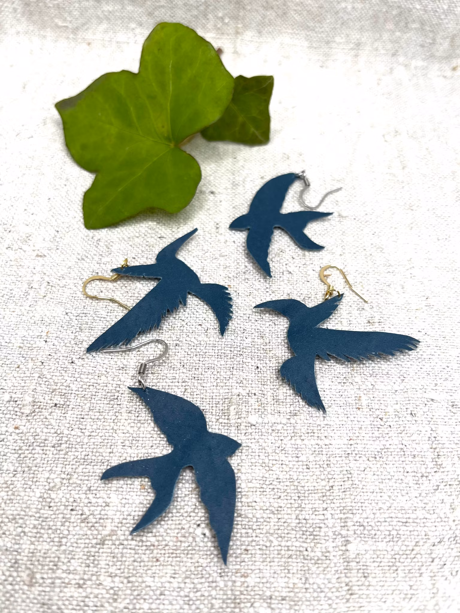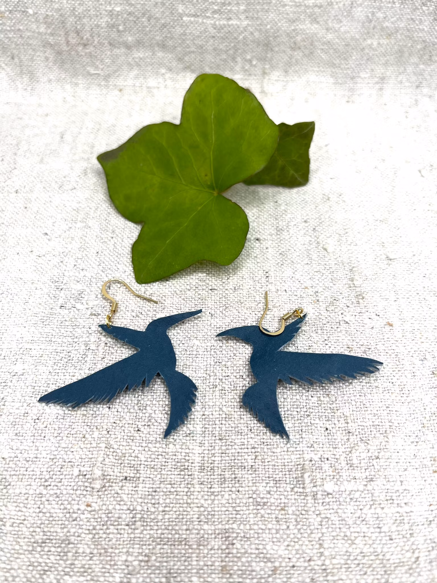 Handgjorda läderörhängen: "Kolibri"